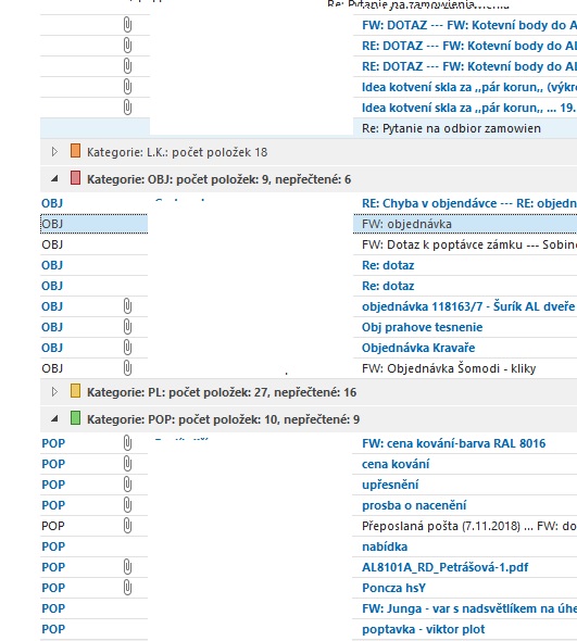 zmizla mi funkce barevností kategorii. Vždy jsem měl ještě pře textovým popisem OBJ / POP / ... barvu příslušné kategorie.