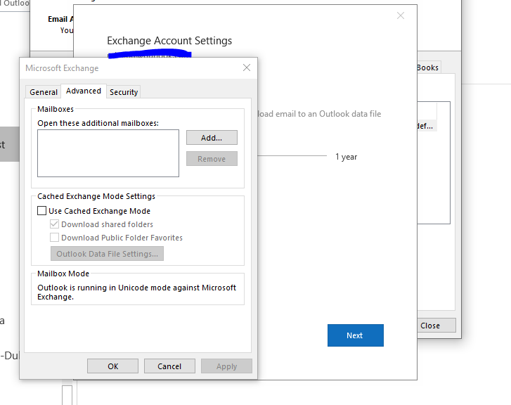 Pro začátek zkus vytvořit nový profil v Outlooku (přes ovládací panely) a tam si vytvoř nový profil a vyzkoušej to tam.
