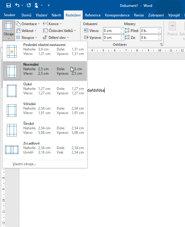 Třeba takhle, nebo si vybrat jinou možnost z nabídky kromě té poslední, případně z nabídky Vlastní okraje.