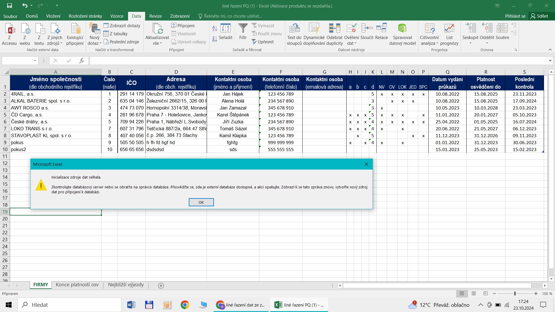 Ale jakmile dám na druhém či třetím listu ono Ctrl + Alt + F5, tak vyskočí chybová hláška, kterou jsem dával při první zpětné vazbě.