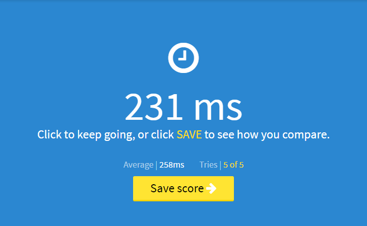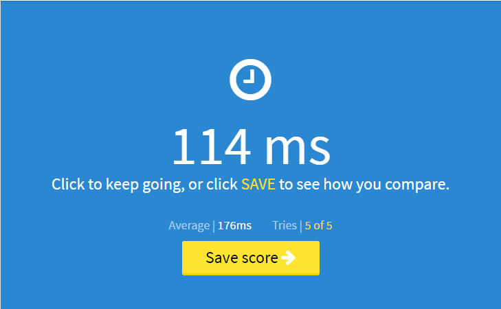 K tomuto přiložte screen celého testu(5 pokusů)(http://www.humanbenchmark.com/tests/reactiontime) ideální bude kdyby jste udělali aspoň dva a vybrali ten lepší výsledek.