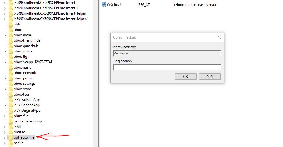Regedit - HKCR - smazat .xpf + kam to ukazuje (Soubor XPF).