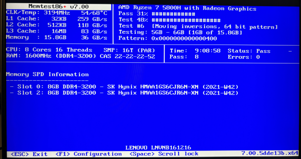 Petrmet: Teď mám 6x pass, takže nechám doběhnout do 8x pass a pak dám vědět. Jinak žádné podivné chování jsem doposud nepozoroval, myslím si, že RAM by měly být ok.
