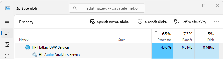 HP Hotkey UWP Service - nonstop velké vytížení CPU