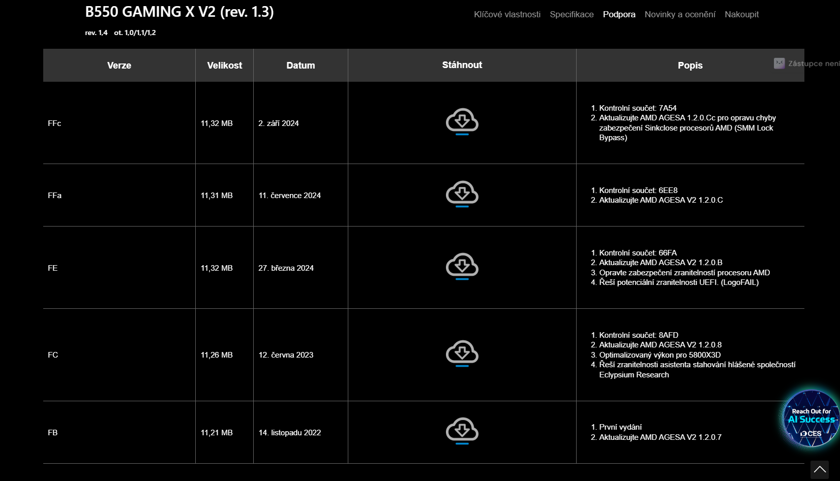 Re: help, aktualizace BIOSu z FC - FE nebo FFc, B550 Gaming X (V2 rev. 1.3)