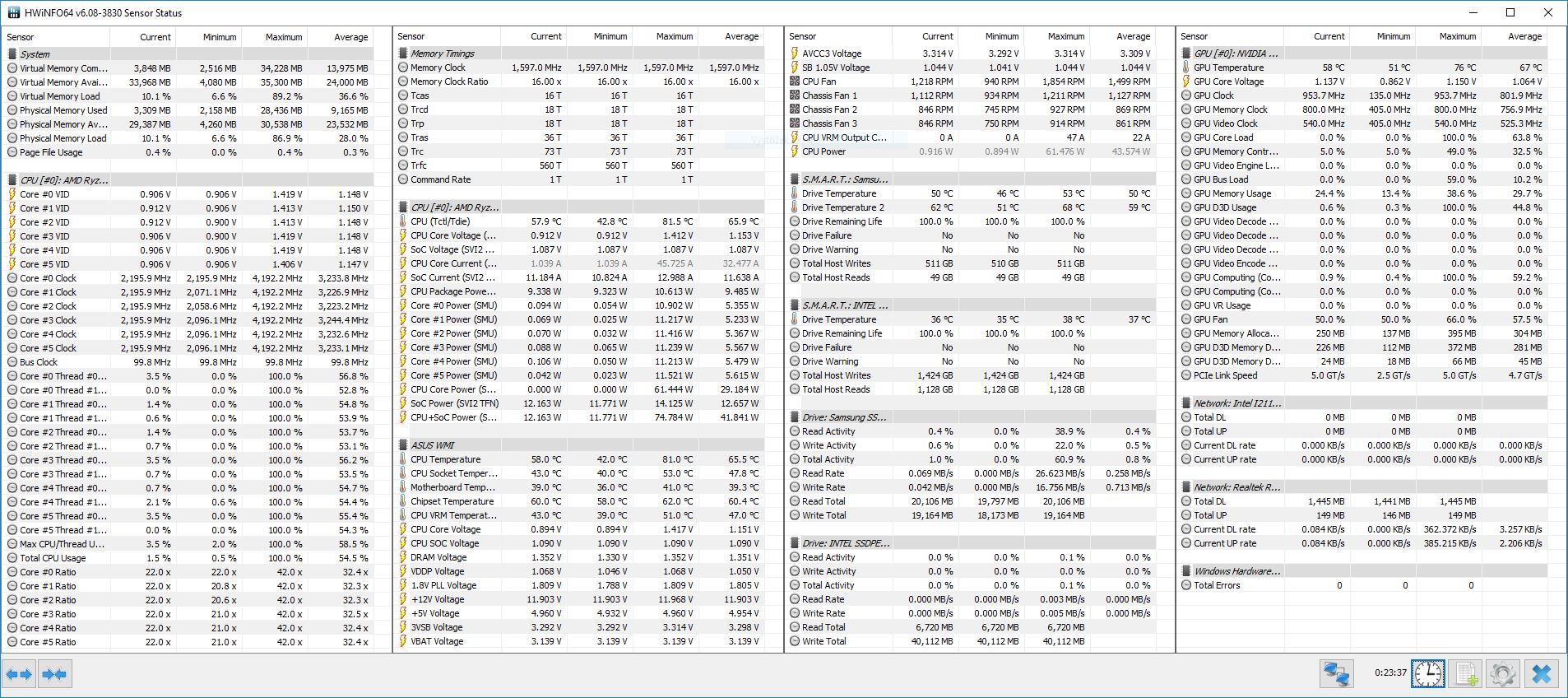 Jsem ti v jiném tématu o tom ironwolfu navrhoval, abys udělal screen z HWiNFO, aby tam bylo vidět jak na tom ten ryzen je, aby bylo možno porovnávat, když bude mít někdo problém, takže bys to mohl dopnit. Samozřejmě screen kompletní, aby to nebyly tři screeny s tažítkama. Samozřejmě to nechat na pozadí třeba půl dne a nechat projet nějaké benchmarky nebo render, aby to mělo vypovídající hodnotu.xbs píše:se to tu místama zvrhlo v diskuzi o Radeonechnevadí, jen poznámka k tomu že by se od 5700XT čekalo víc FPS ve hrách, tak možná že s tim referenčnim chladičem brzo naráží na power limit, takže ideál podvoltovat, jak už ostatně bylo zmíněný...