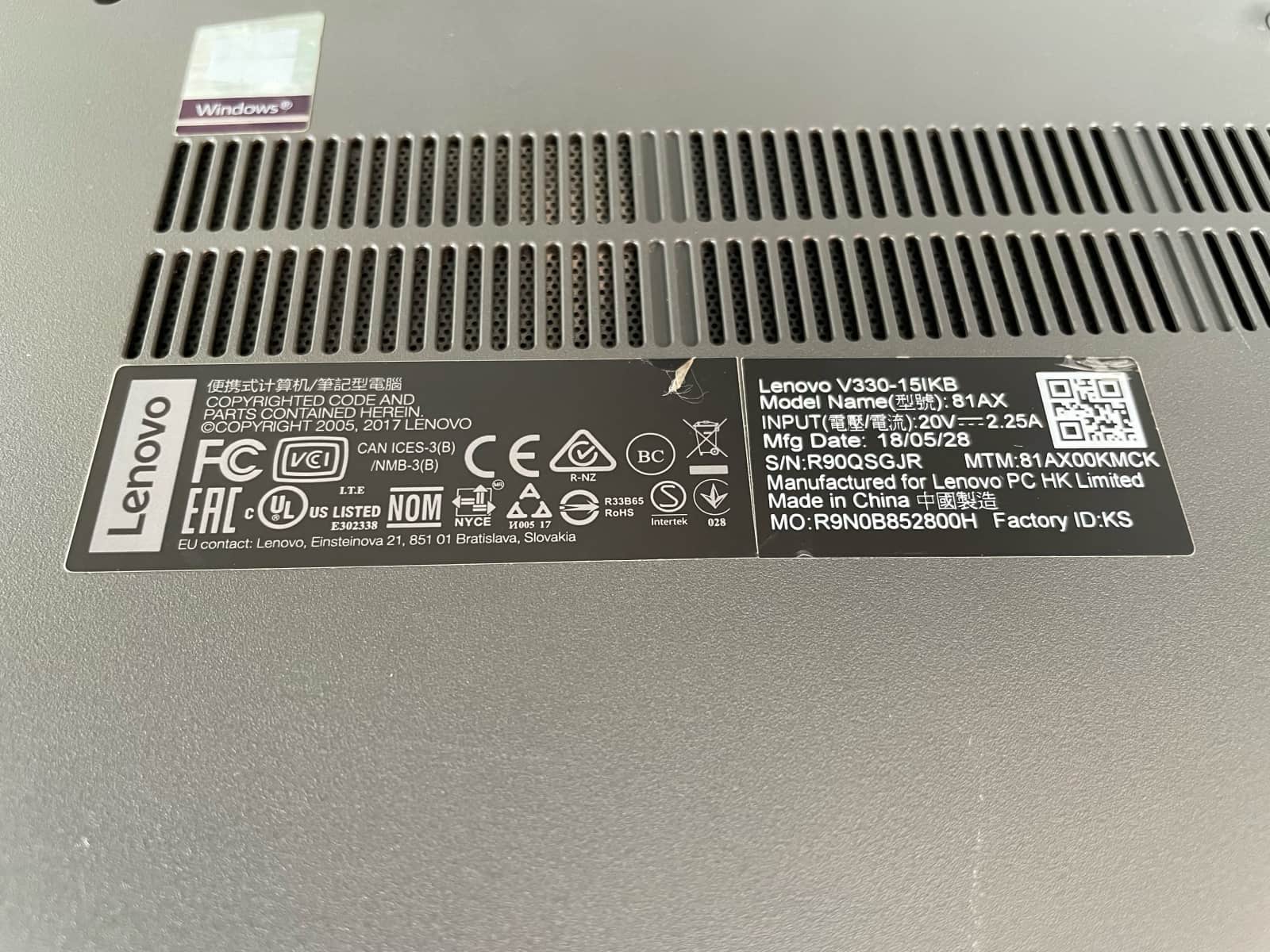 Upgrade RAM a SSD na Lenovo V330-15IKB