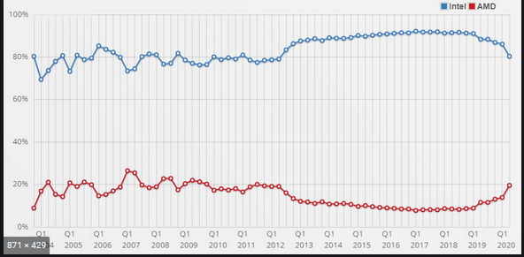Podle tohoto zdroje podíl Intelu padá od 1.Q 2016.
