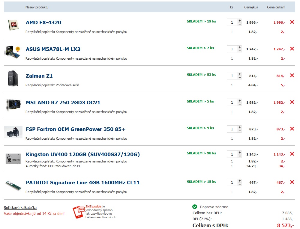 Proč ne? Ale zrovna FX 43xx nebude asi ta nejšťastnější volba... Ale chápu marketing a Marfy ji tam dal pravděpodobně čistě kvůli docházejícím financím, na celkové sestavě jde vidět, že se šetřila každá koruna. Pokud se neplánuje upgrade (na sestavu s dobrým budoucím potenciálem k většímu upgradu stejně není rozpočet a bude rád, když mu tam aspoň teď zůstanou komponenty, které mu neshoří pomalu při prvním zapnutí), viděl bych to spíš na X4 880K (místo FX 43xx), která se klidně dotahuje i na i5 a míň topí. Samozřejmě s ní i jiná kompatibilní deska. Asusu bych se osobně u ZD vyhl (podpora) a volil bych aspoň něco takovédleho https://www.czc.cz/asrock-fm2a88x-pro3- ... 12/produkt.