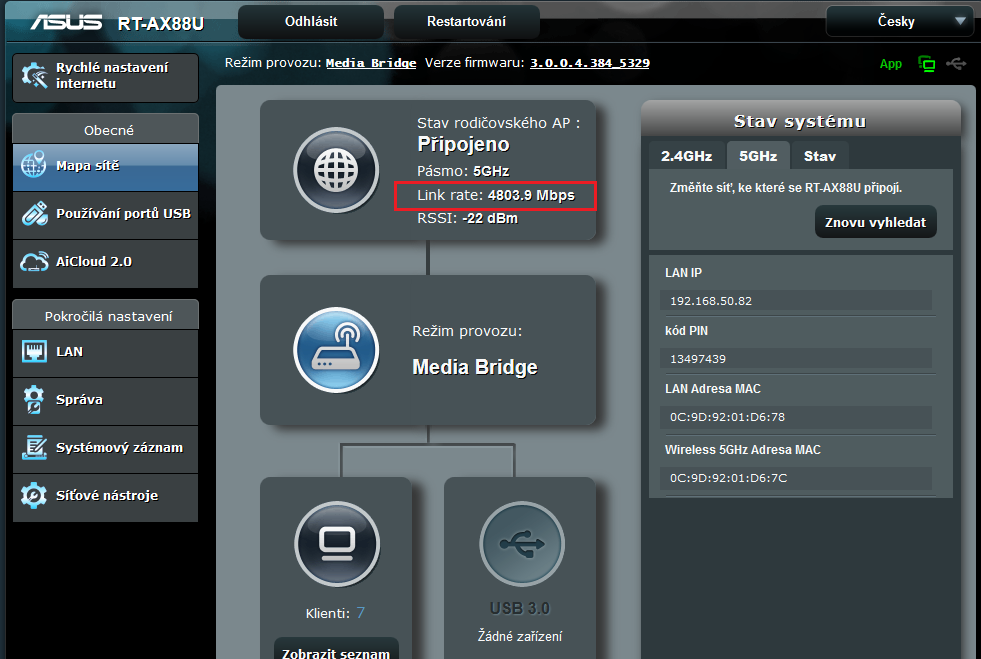Režimy provozu - router, AP, repeater, Bridge, AiMesh