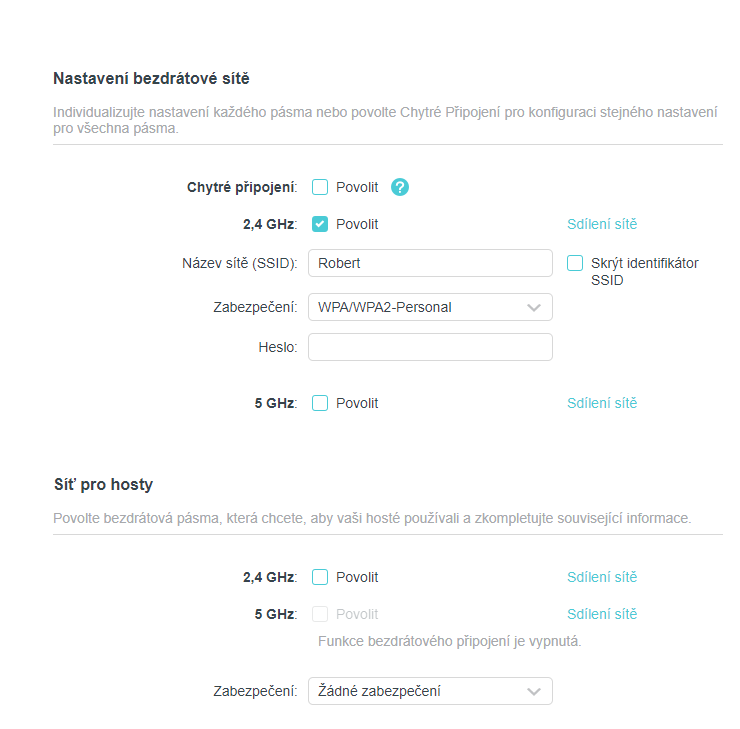 Dále, router č.1 AX1800 Wi-Fi 6 Router mi vysílá nějakou skrytou síť, ale 5GHz i síť pro hosty mám vypnutou.