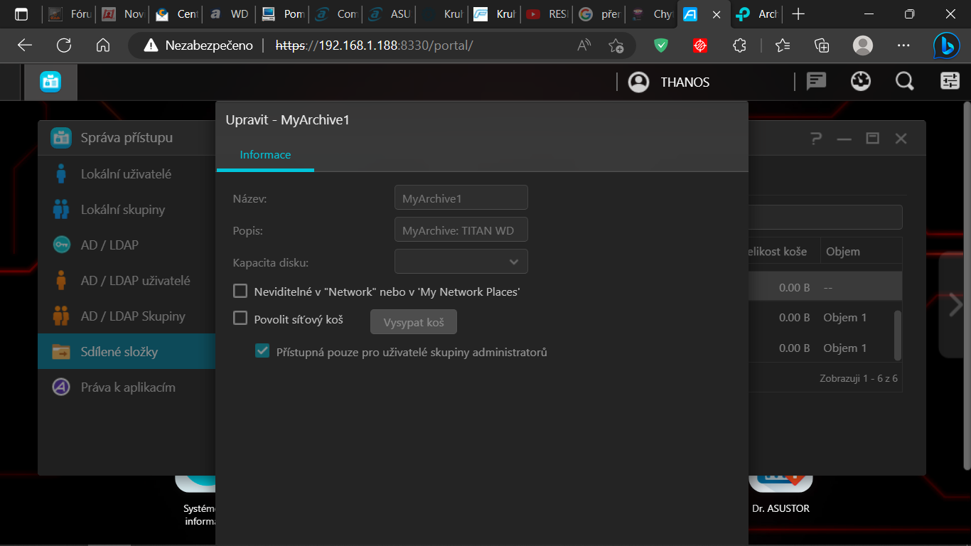 Dále - sdílené složky v asustoru - nemáš u nich zapnuté šifrování? Pokud ano, zkus ho vypnout.