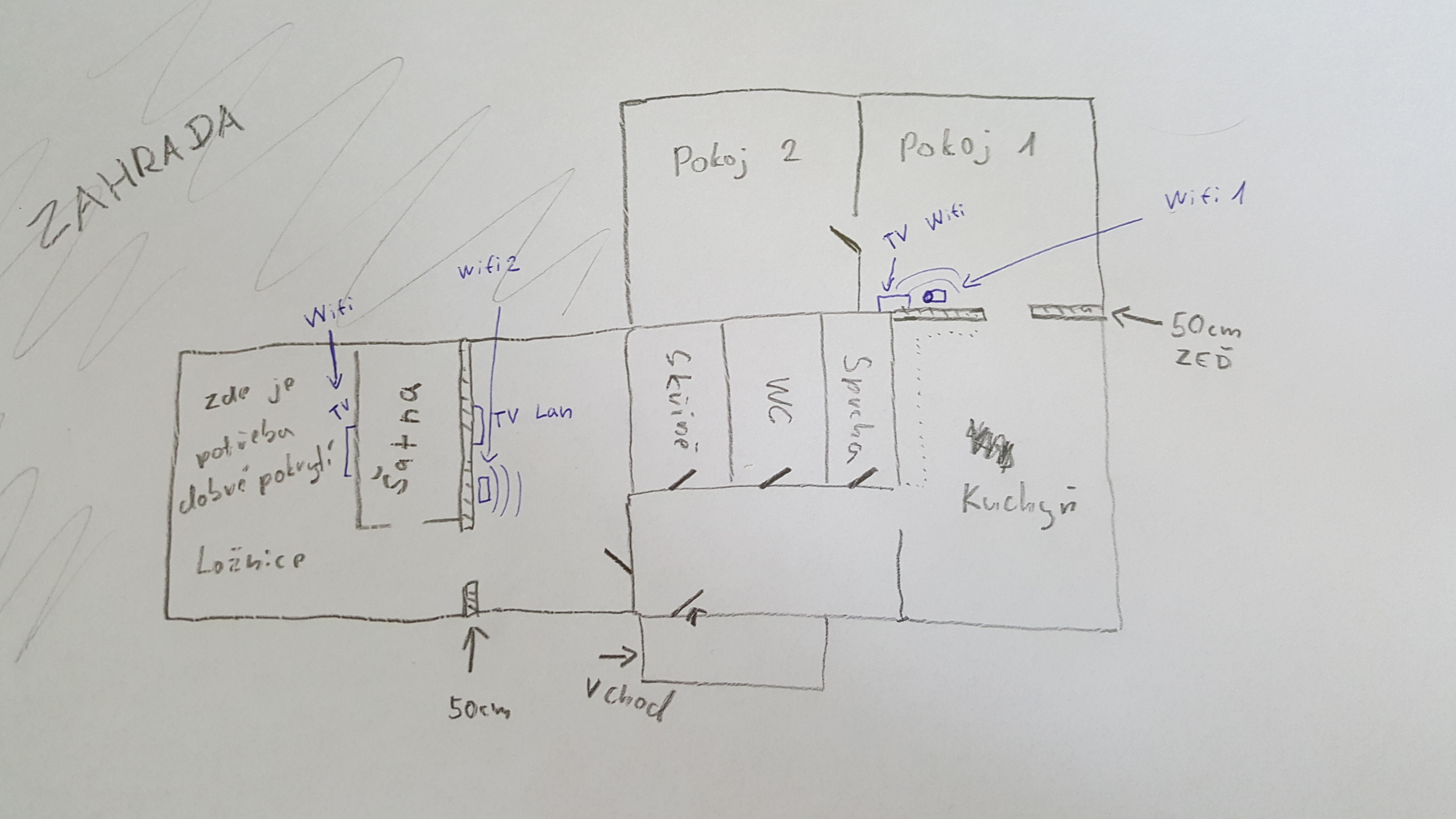 Potřebuji silnou wifi podle plánu níže na místo Wifi2.