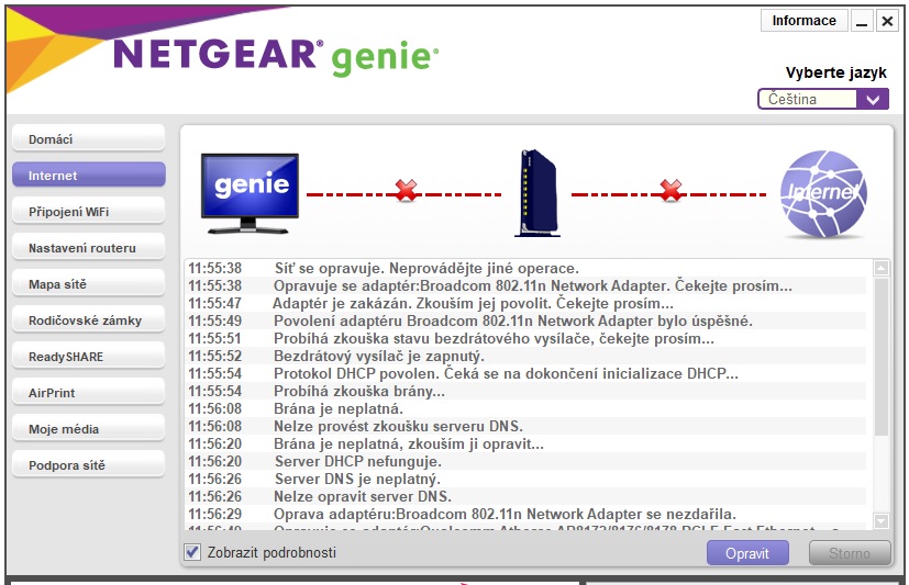 Re: Problémy s připojením k Internetu