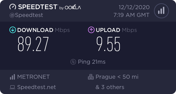 Dneska se mi ozval iz Metronetu ohledně mého internetového připojení. Řekli mi, že žádná agregace zde není z důvodu cetinu a tudíž mi to nemá zpomalovat internet. Nicméně došla jsem asi k závěru, že to bude chyba u cetinu (Terminátoru) Jelikož když jsem pomocí VDSL napojila svůj router vše funguje jak má. A dokonce snižuje i ping.