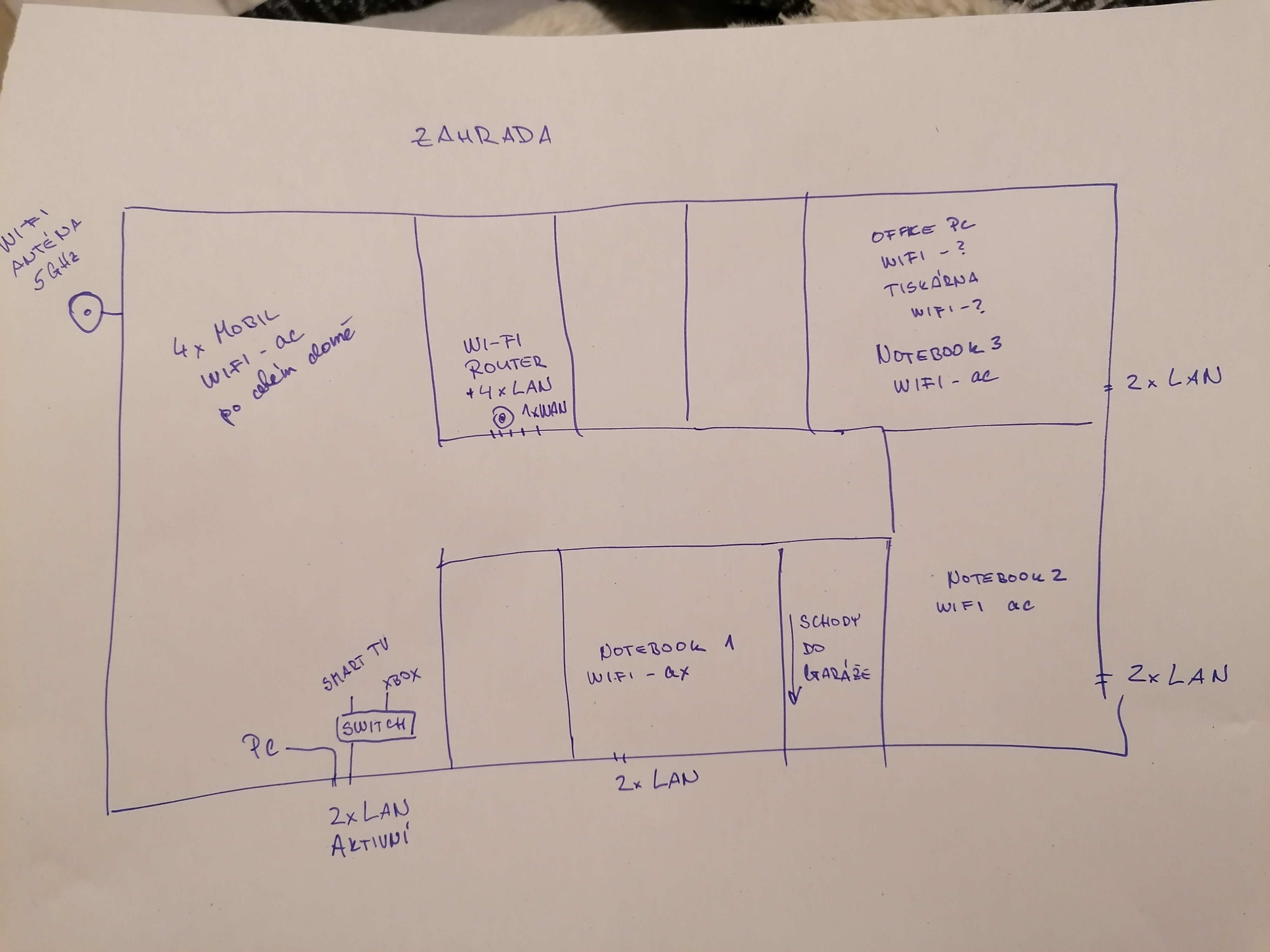 Priorita 1: spolehlivé připojení k WiFi na. Ntb 1, především pro nepřerusovane videokonference přes teams. Asi zapojim jednu Lan zásuvku v pokoji s tímto ntb, bohužel s ním občas cestuju po domě, v létě si rád s prací sednu i na zahradě na terase hned u domu