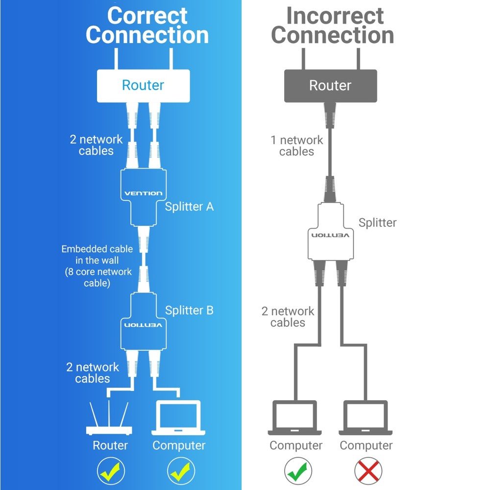 Zdravím. Potřebuji poradit zda je možné zapojit z jednoho kabelu dvě zásuvky pomocí rozdvojky a bez použití routeru, switche atd... Kabel A vede z routeru do zásuvky, kabel B vede pouze ze zásuvky. Je možné použít něco takového (https://www.alza.cz//vention-1-to-2-rj4 ... aLEALw_wcB), abych měl zapojené obě zásuvky? Kabely jsou na půdě a není tam elektřina, takže proto není možné použít router, nebo switch. V krajním řešení by stačilo, aby fungovala zásuvka přes kabel B, tak jestli jde aspoň tohle? Děkuji