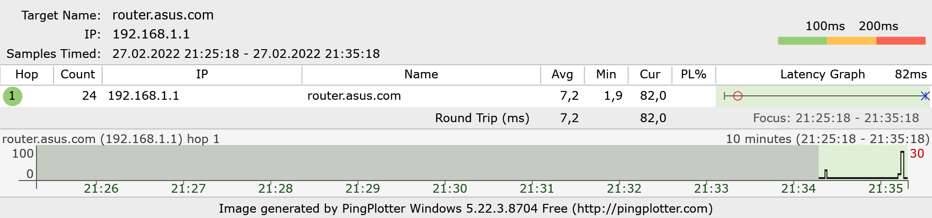 - pingplotter třeba na nějaké internetové rádio v době výpadku