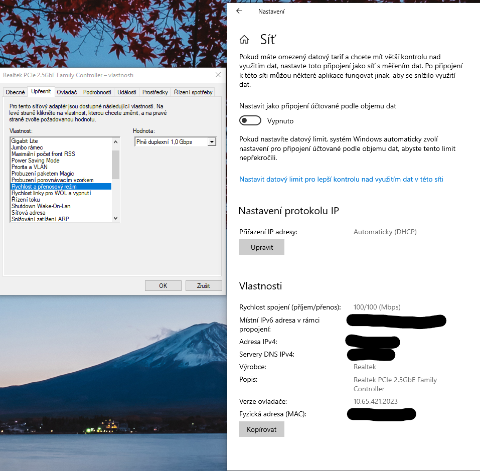 Po reinstalaci win 10 mi nejde na sítovém adaptéru Realtek PCIe 2.5GbE Family Controller nastavit vyšší rychlost spojení než 100/100 (Mbps) Před reinstalací jsem měl nastavenou rychlost 1000/1000 (Mbps)