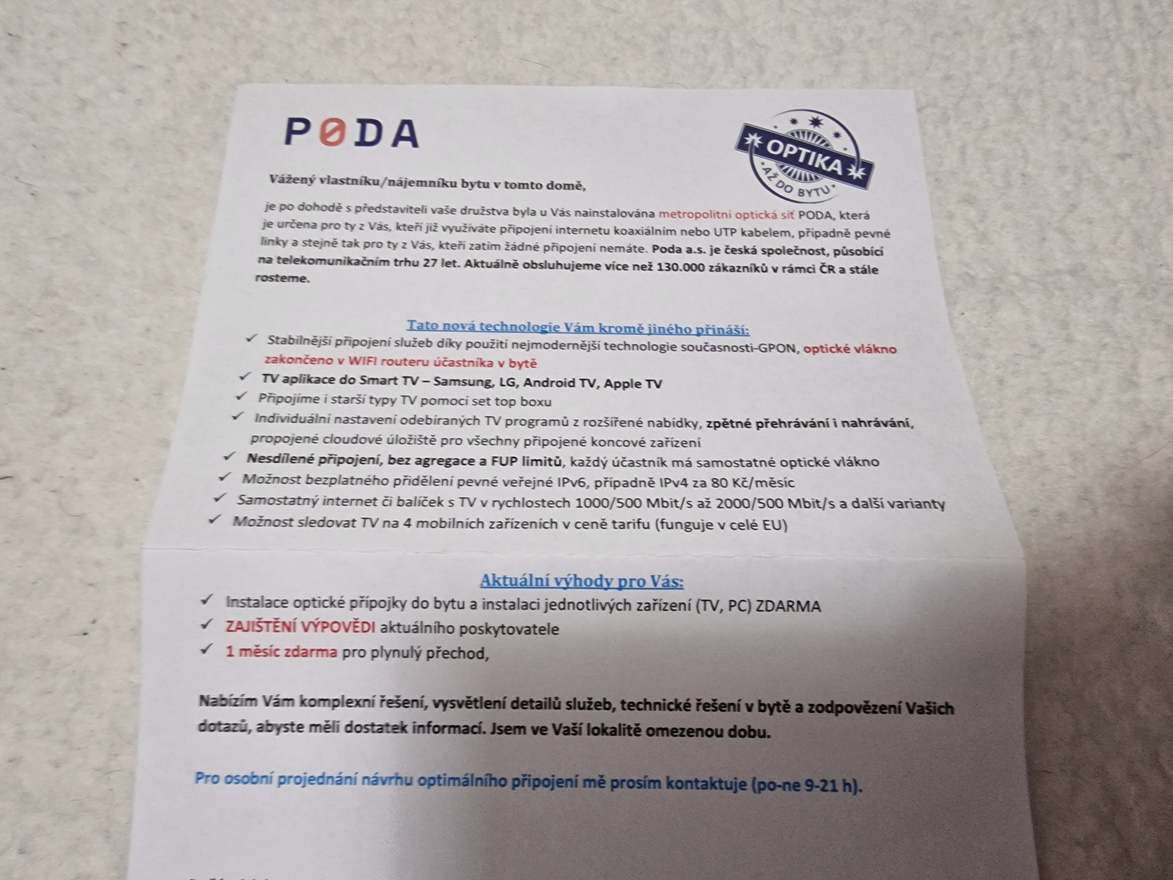 v pátek mi bylo zřízeno nové připojení od Pody o rychlosti 2000/500 Mbps, typ připojení je GPON FTTH. Přijímací zařízení od poskytovatele je: Huawei EchoLife HN8546Q.