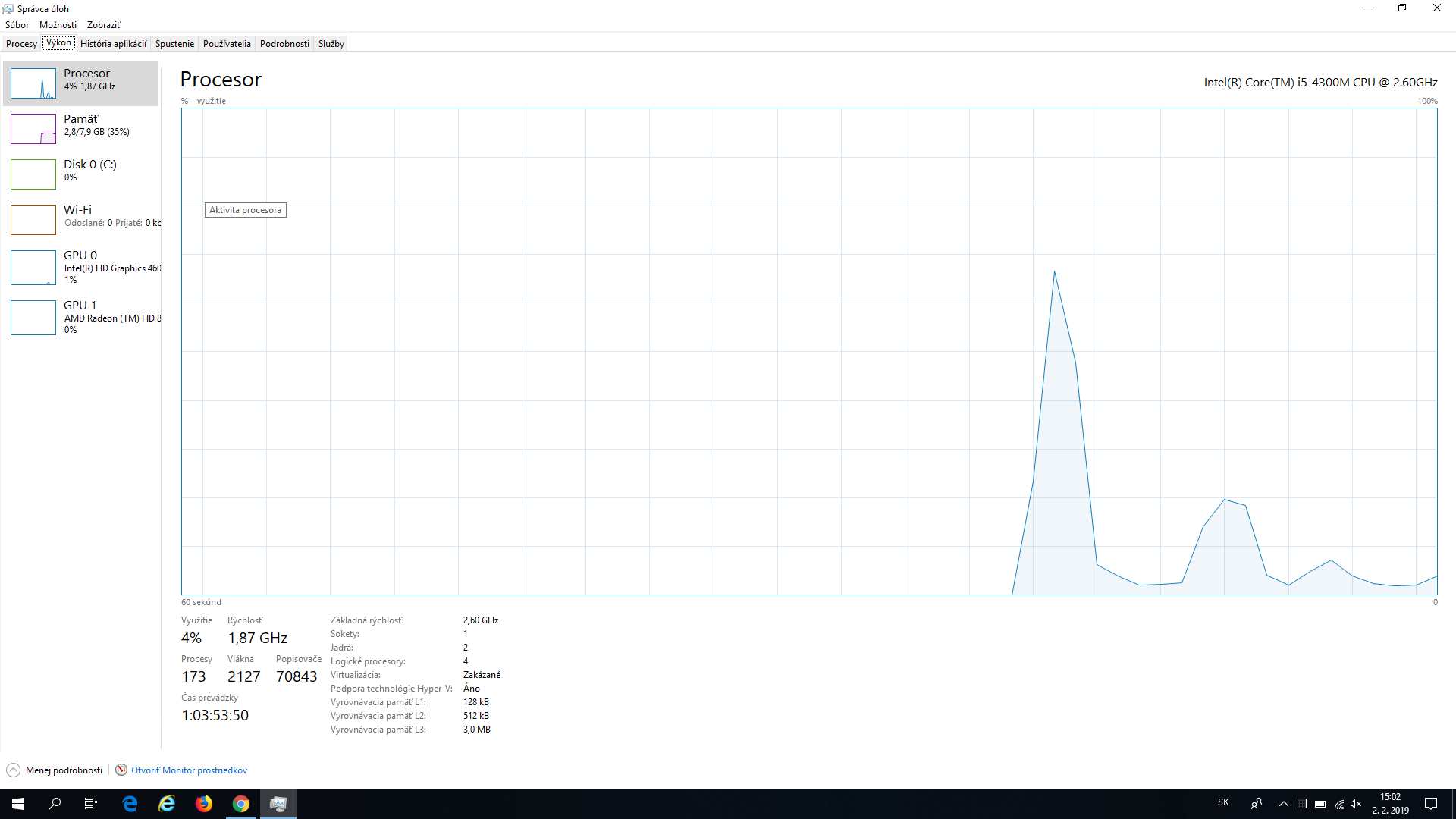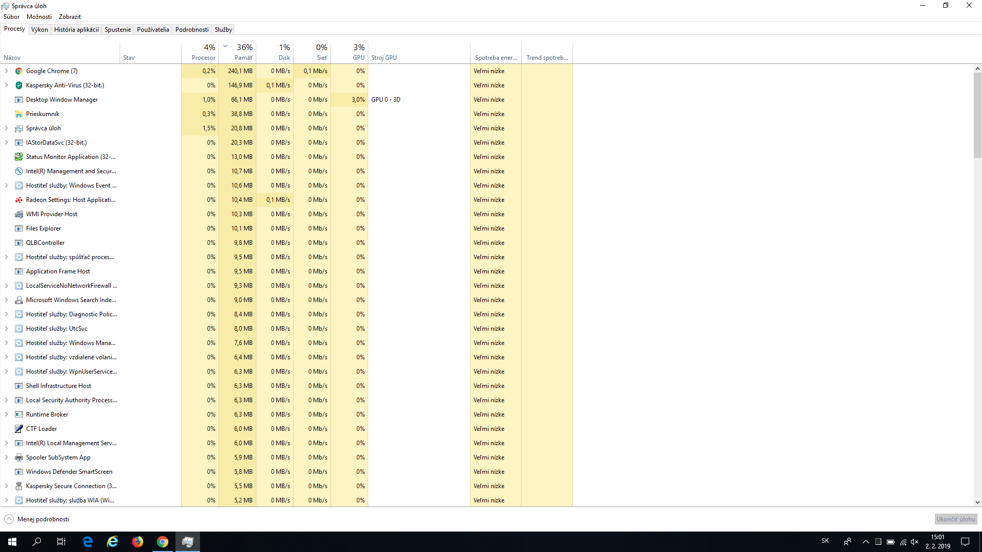 Dobre pokúsim sa ho zmenšiť a sú to také procesy ze procesoru záberaju 0% ale ramky sú potom na 30% lebo pri každom procese je tak 1mb, 5mb cca do 10 + antivirus dajakých 100mb toľko procesy mi tam na skočili asi takto robil som v antivire ci nemám dajaký vírus reštartoval som notebook a potom pozriem správcu úloh a tam toľko procesy
