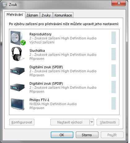 A máš je správně detekována jako zařízení pro přehrávání a záznam?