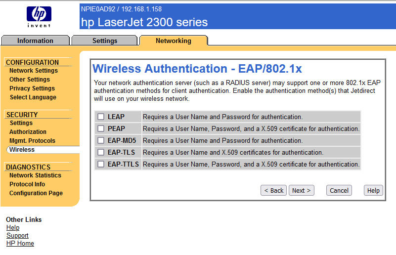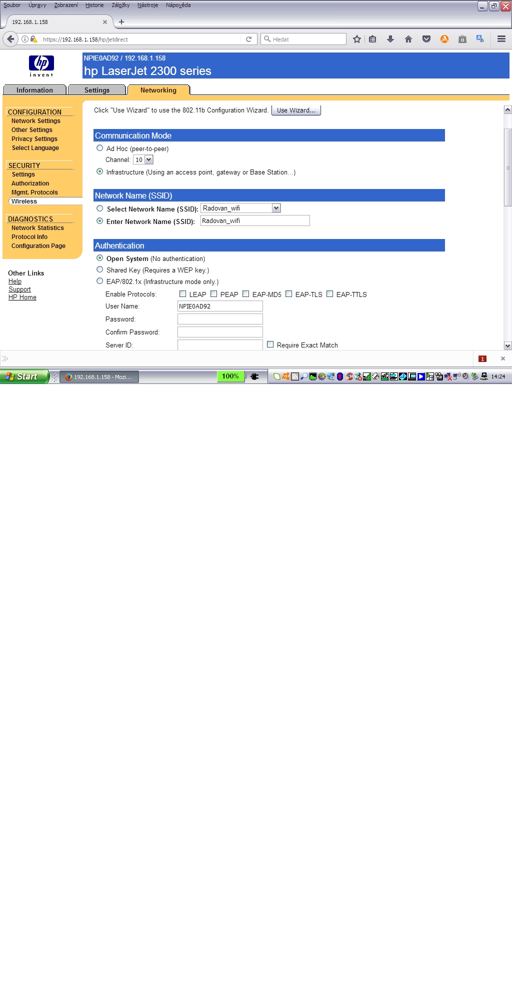 Sehnal jsem WiFi print server HP Jetdirect J6058A ten teda v celku dobře fungoval až na to že má typ šifrování pouze WEP - jak prosím docílit aby měl šifrování i WPA? V návodu je uvedeno i WPA- viz obr. proč to tam teda je když ta možnost tam není možná navolit?