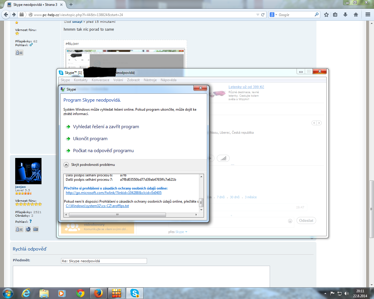 ted jsem odinstaloval skype tak ho mam znovu nainstalovat