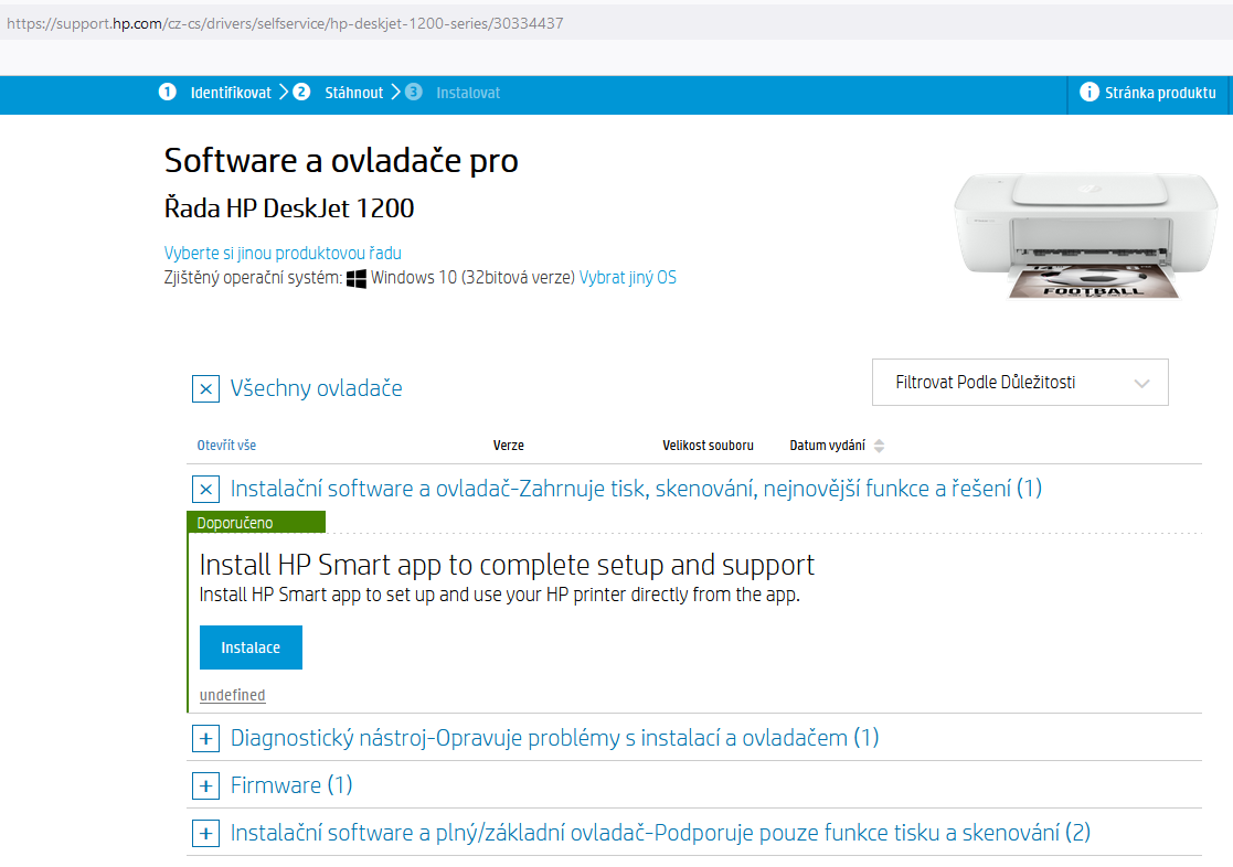 Ten ovladac co tam mas neni pro tuhle tiskarnu, ale pro ten novejsi DeskJet 1200.
