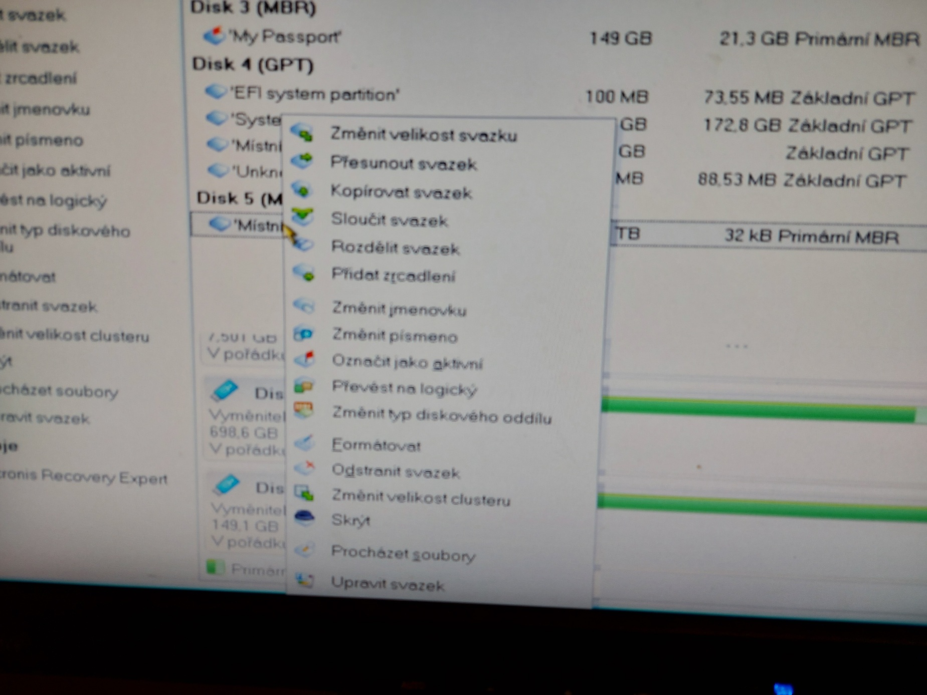 Skús , ak klikneš priamo PTM na označenie Disk 3 a vyber nejakú ponuku.Trebárs aj Convert na GPT, či to prebehne.