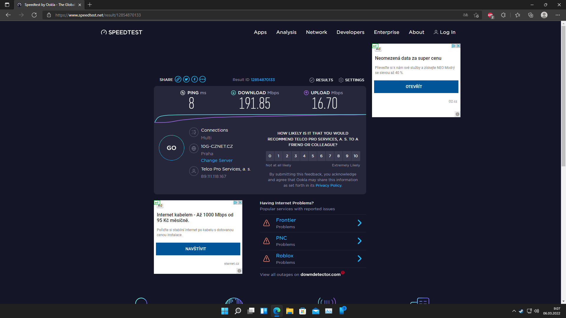 Co se týká pingplotteru, tak problémy s pingem nemám a proto ho nebudu používat. Pokud by však bylo nutné doložit i obrázek z pingplotteru, rád ho doložím.