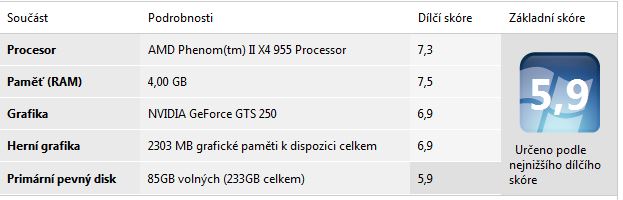 Rejtharik:od 2.5 až 3.5, já jsem na Pentium IV 2.4GHz,1GB RAM,128MB ATi 9600,250GB SATA II dostal 3.4.