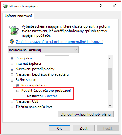 Ale ano, je to tam. Musíš dát Změnit nastavení schématu a potom Změnit pokročilé nastavení napájení: