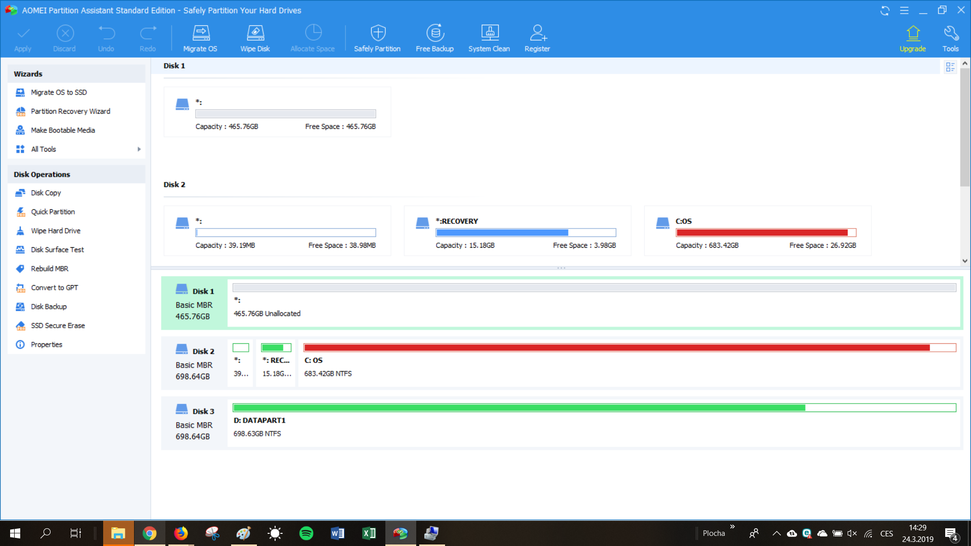 realně jsou tam 3. Tak jsem to převed a dal Delete all partitions.