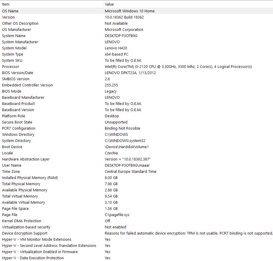 SYSTEM_PRODUCT_NAME: Lenovo H420