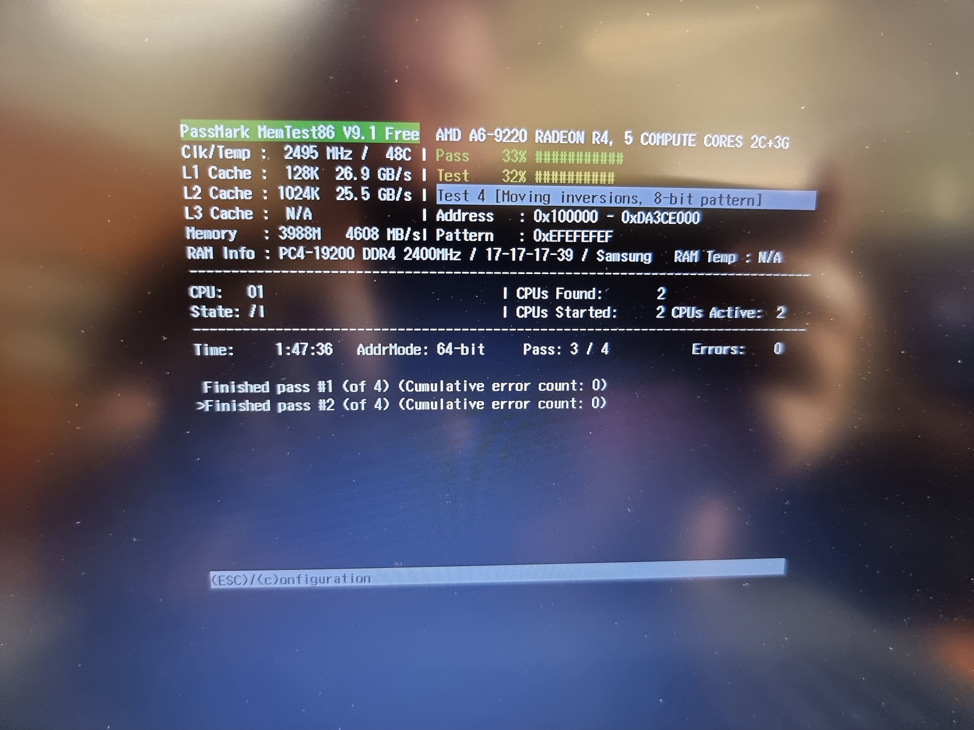 Memtest jsem provedl viz. foto. Jelo to přes hodinu a 3/4. Bez chyby. Viz foto.