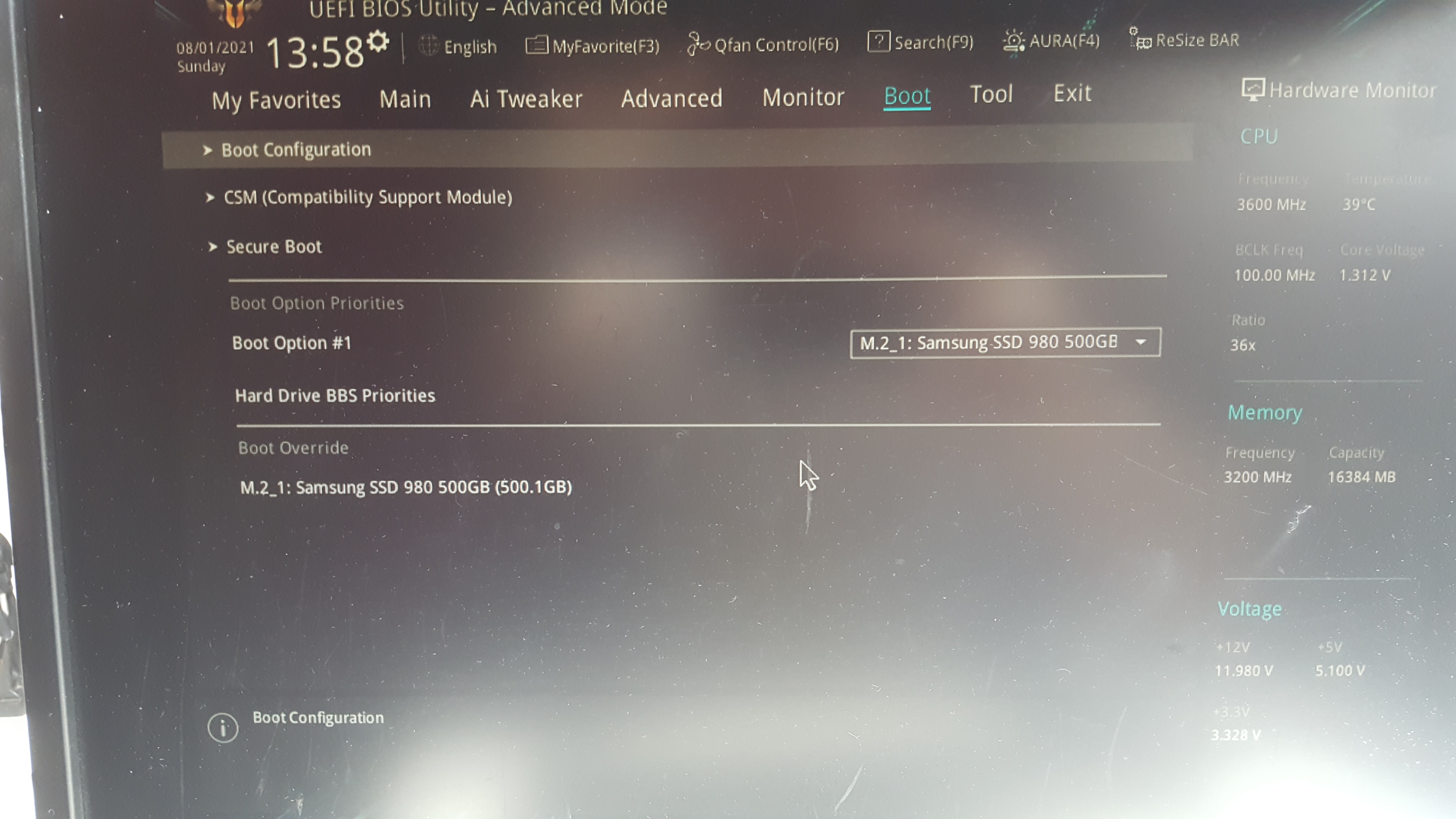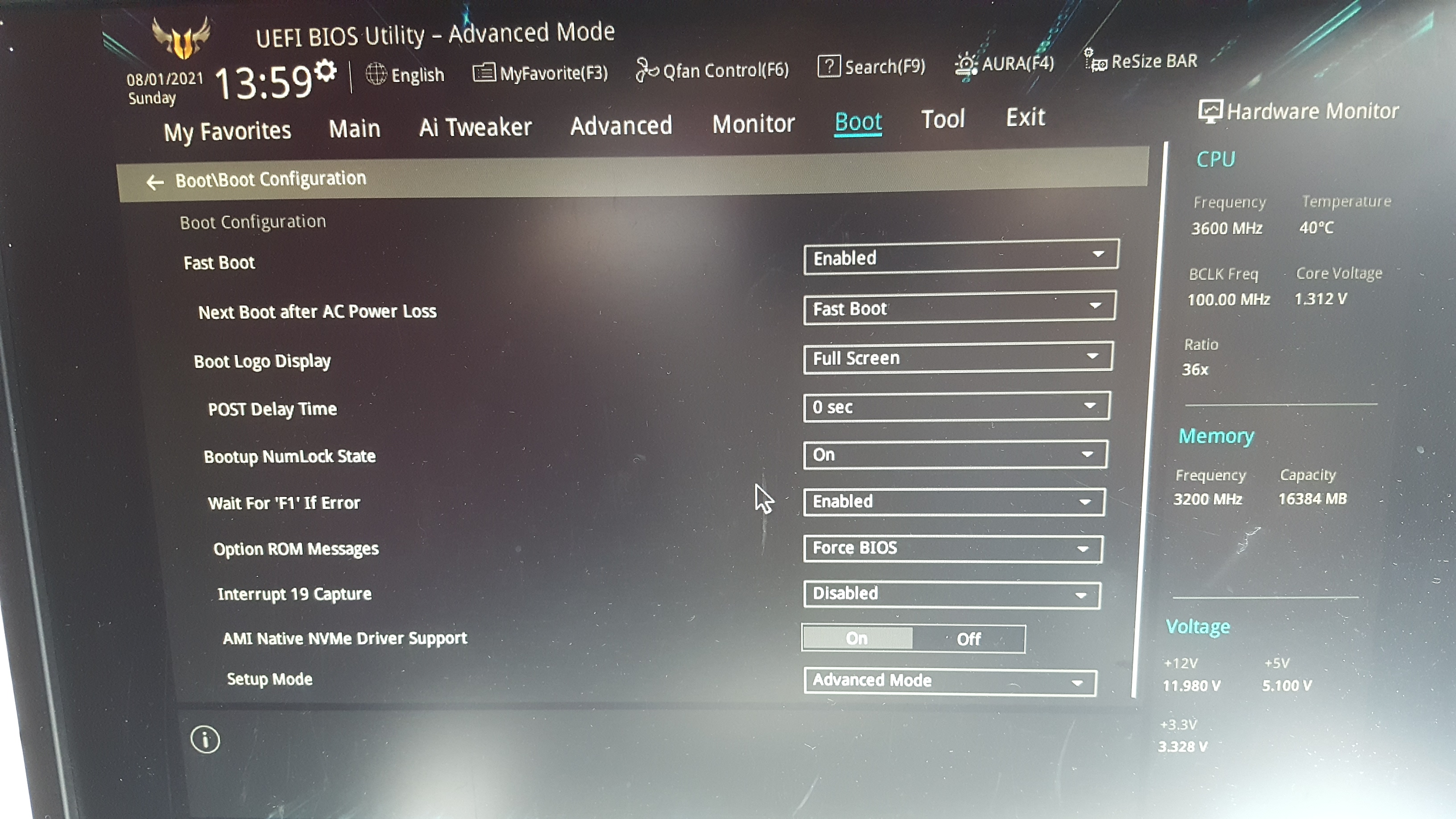 Ahoj, nedávno jsem pořídil nový PC (stará je jen grafická karta), ale zdá se mi, že načítání systému není tak rychlé, jak by mělo. Trvá 18 sekund, což je na tuto sestavu dost. Po zmáčknutí tlačítka zapnutí trvá asi 10 sekund, než se objeví logo základní desky (asus) a následně asi 8 sekund než se načte windows. Ve správci úloh.."po spuštění".."Poslední čas ze systému BIOS 10.8 s" Budu rád za tipy na zrychlení ;). Přikládám fotky biosu.