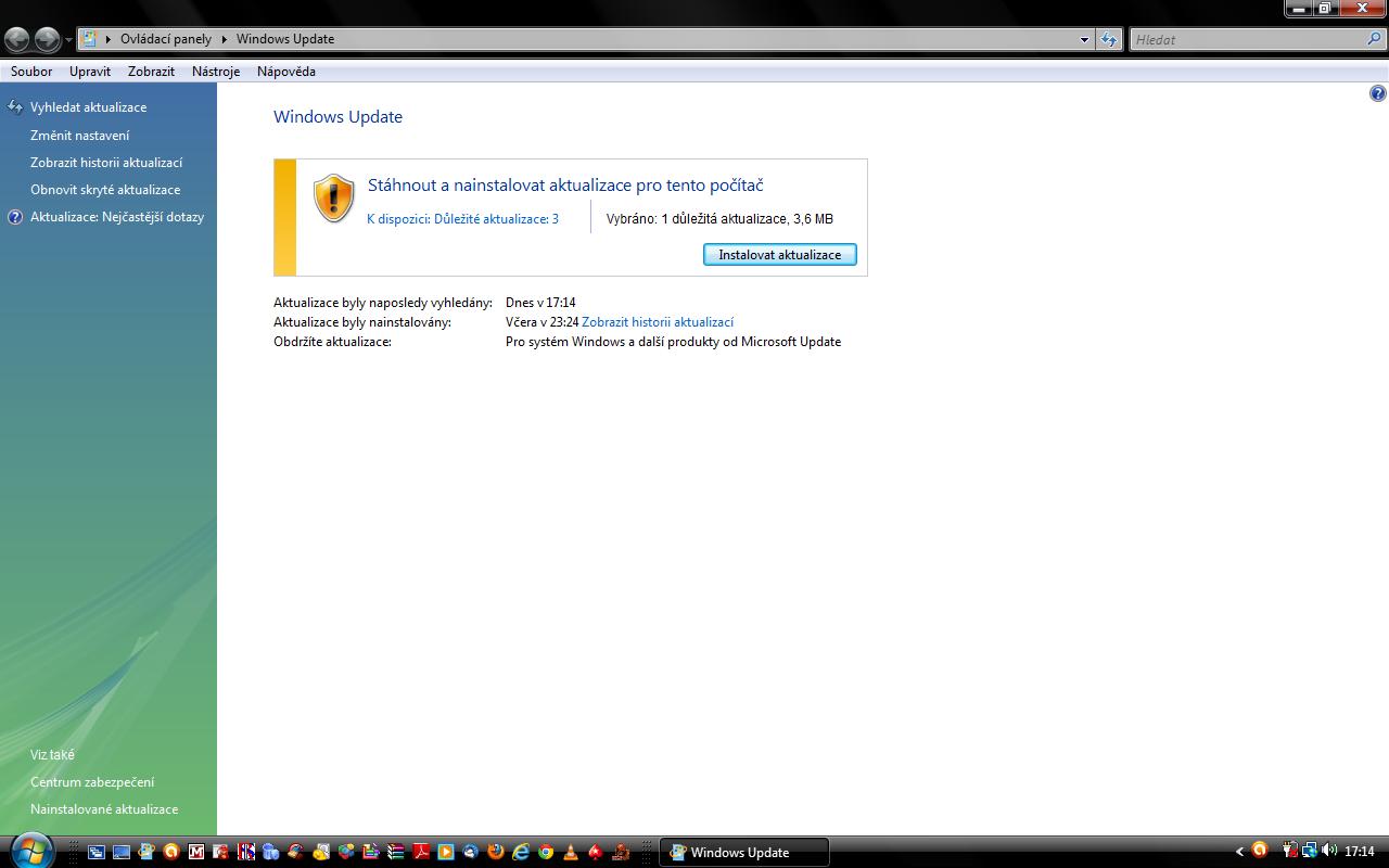 Problém s aktualizací Windows Vista...