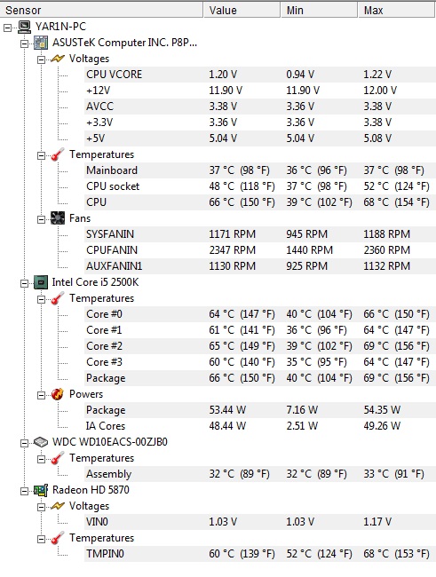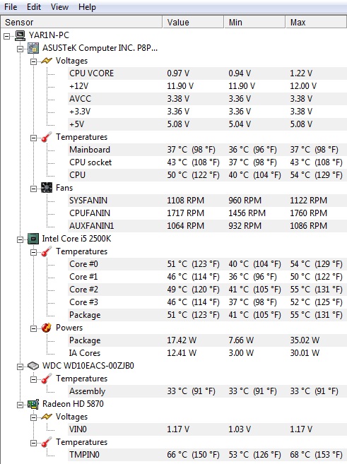Spusť HeavyLoad a Hardware Monitor. V HeavyLoad spusť zátěžový test, po 10 min udělej screen Hardware Monitoru a hoď ho sem.