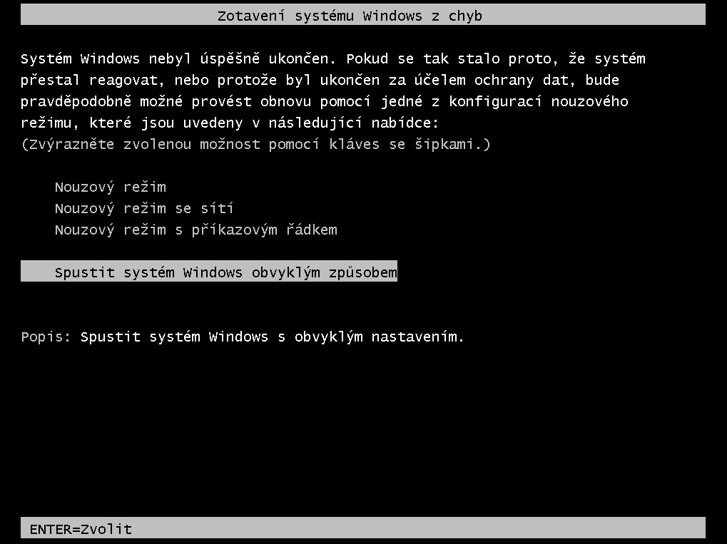 Stiskněte klávesu F8, jakmile se zobrazí logo systému Windows 7.