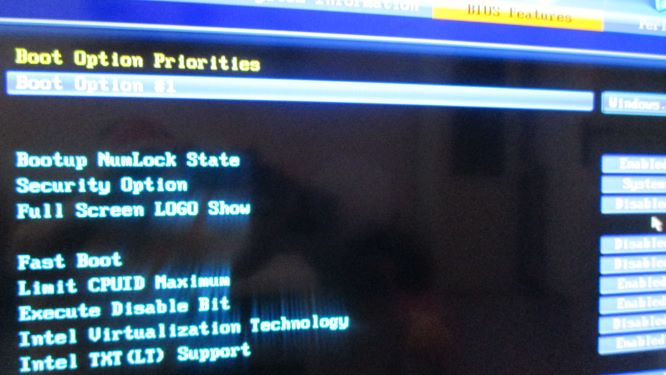 5) Nastavení Boot Option #1 na flashku, nebo vyvolání boot menu (F12), spuštění instalace