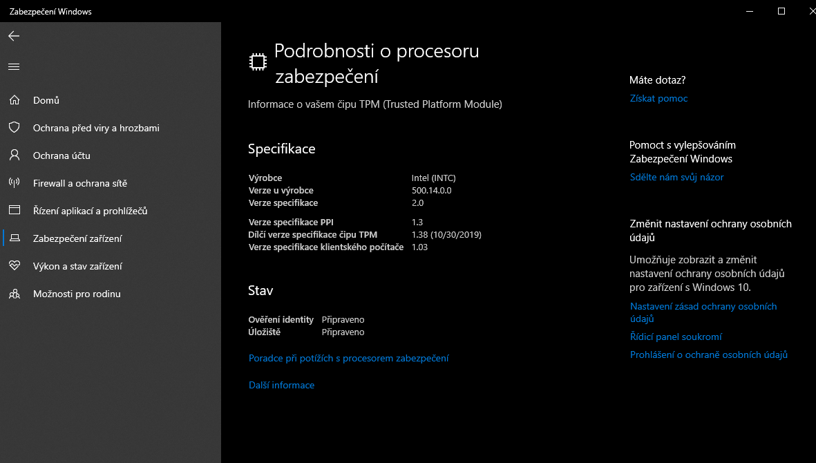 Procesor jsem neměnil. Vycházím z toho že TPM je součástí CPU. Bohužel ve specifikaci desky jsem jej nenašel a na support stránkách Gigabytu nic o tomhle není.