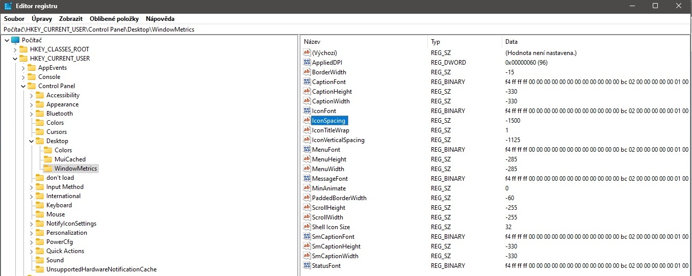 Šířka rámečku se nastavuje v regeditu, konkrétně: Počítač\HKEY_CURRENT_USER\Control Panel\Desktop\WindowMetrics, napravo hodnota DWORD IconSpacing a měla by tam být hodnota -1500 (lze nastavit záporné hodnoty od -480 do -2500) Po kontrole a nastavení stačí ve správci úloh restartovat proces explorer.exe