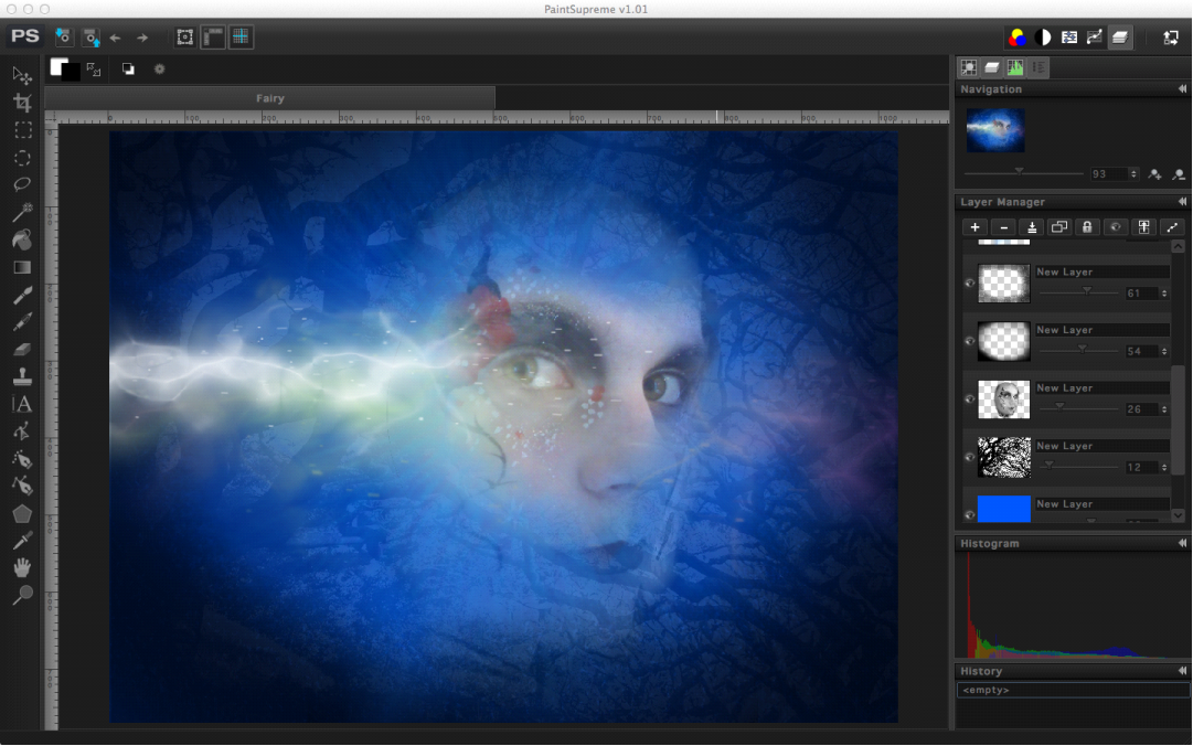 Foto editor. Díky vynikajícímu grafickému rozhraní, širokému spektru funkcí které mohou konkurovat jiným editorům obrázků, PaintSupreme poskytuje uživatelům velmi příjemné prostředí pro vytváření a úpravu jejich obrázků.
