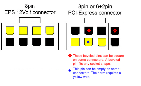 Erredar,na zdroji je jedno, kde který zapojíš, pro cpu i pcie jsou stejné, tedy většinou, evga myslím to řeší malinko důkladněji, pořád ale nezabráníš nějakému človíčkovi nacpat kabel z pcie do 8 pinu cpu, protože ty piny to dovolí ...