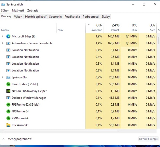 Keď pozriem do procesov tak procesor ukáže tak na zlomok sekundy na 100% ale hneď padne dole. Ale to je vždy tak nie iba keď nič nerobím tak to asi nebude nejaká vada.