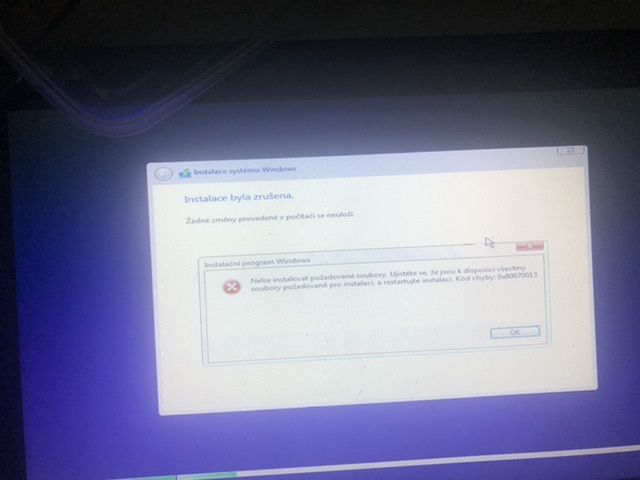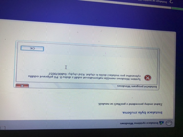 Windows nesel na jejim nb nikdy nainstalovat. Nejdriv chyba ze nejde formatovat a pak pri priprave oddilu pro instalaci doslo k chybe (cisla chyb v priloze). Pri win instlaci nsel nikdy formatovat. Format v cmd nepomohl.