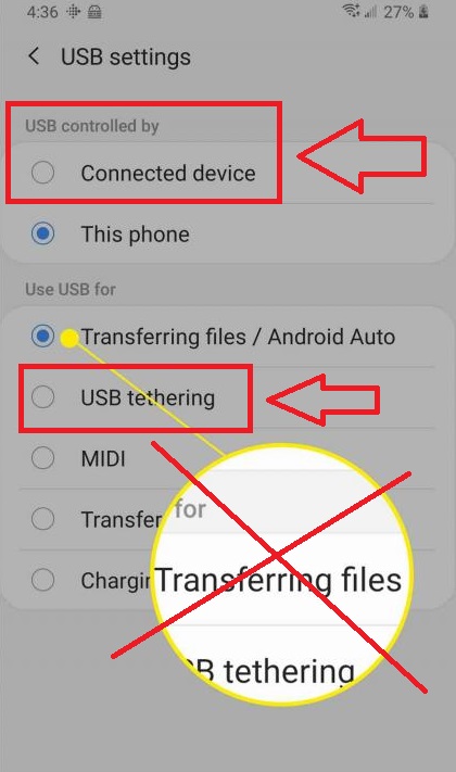 usb tethering jako primární nastavený je , kontrola na Xiaomi note 9 pro není