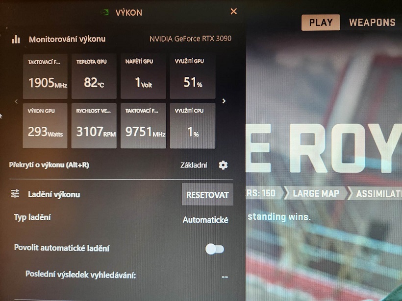Jakmile zapnu hru (např. warzone), tak v menu okamžitě naskočí teplota 83 stupňů a větráky jedou na max.