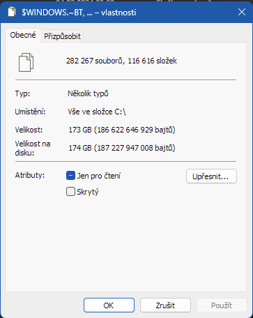 Tohle se zobrazí, když označím vše na disku a dám vlasnosti.